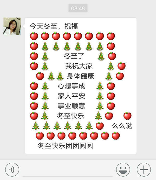 我們王總一大早,就給了我們一個(gè)驚喜:今天冬至提前下班,一起包餃子。而且老板親自去買包餃子材料回來,就像一家人一樣。